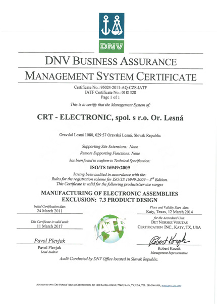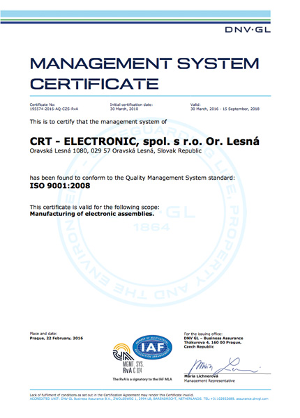 Bestückung - Werk in der Slowakei (SK) | ISO 9001 : 2000 |